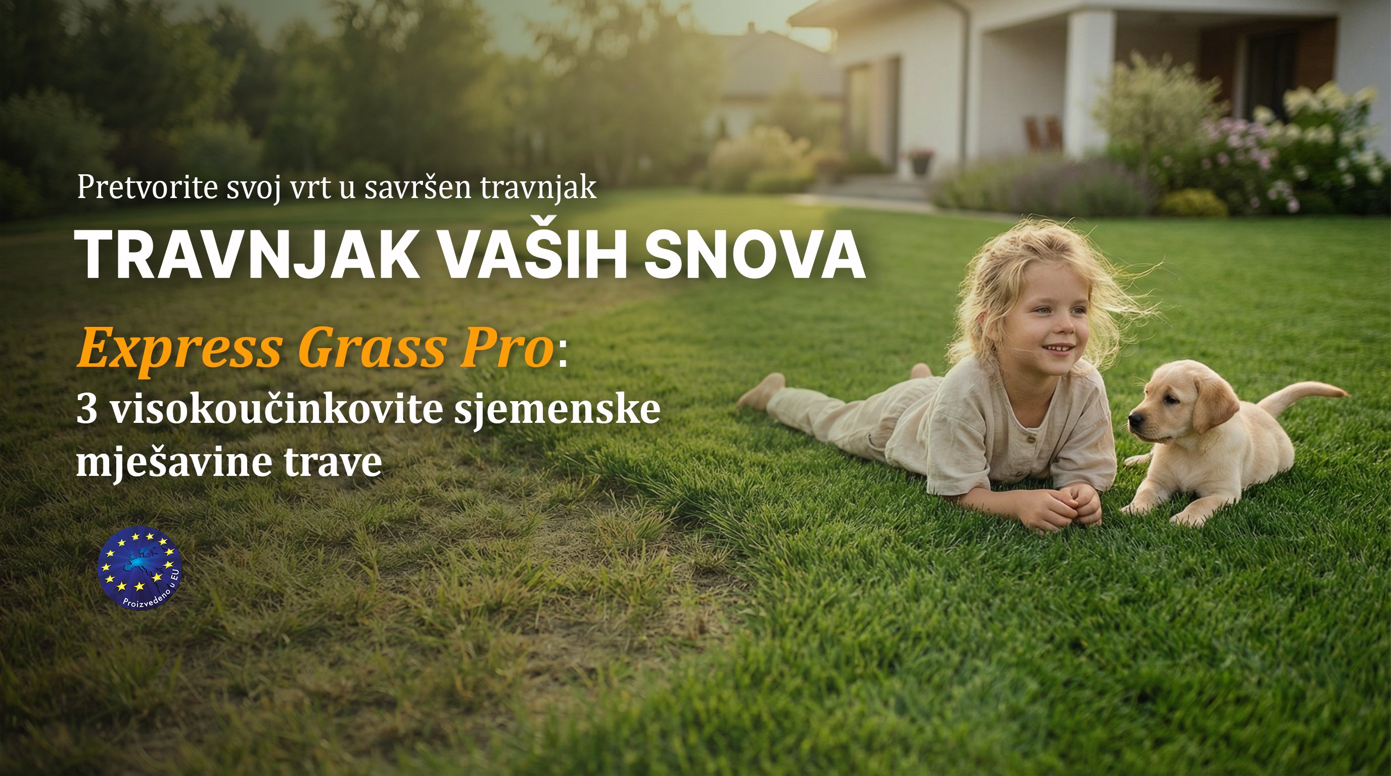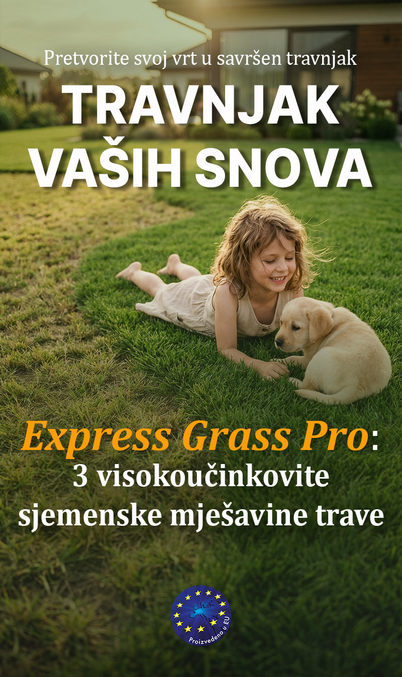 Ova patentirana kombinacija sjemena stvara zeleni, gust i izdržljiv travnjak tijekom cijele godine. Kombinacija sjemena za travnjake (vrsta trave) Express Grass Professionnel kombinira 3 različite vrste (sjemenja) trave koje eliminiraju 3 glavna uzroka nekvalitetnih, rijetkih i suhih travnjaka podložnim bolestima. Sjeme je ekološkog i bio porijekla.